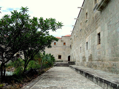 We were walking to Santo Domingo church and walked by this beautiful old building that turned out to be the Etno-Botanical Gardens of Oaxaca. There is an entrance fee, but apparently today is national botanical gardens day in Mexico. Surprisingly, we had not known this. So we got in free if we went on a guided tour in Spanish. The woman giving the tour took forever to talk about the plant/plants at each stop. She did, however, talk relatively slowly so that this was a Spanish lesson as well.